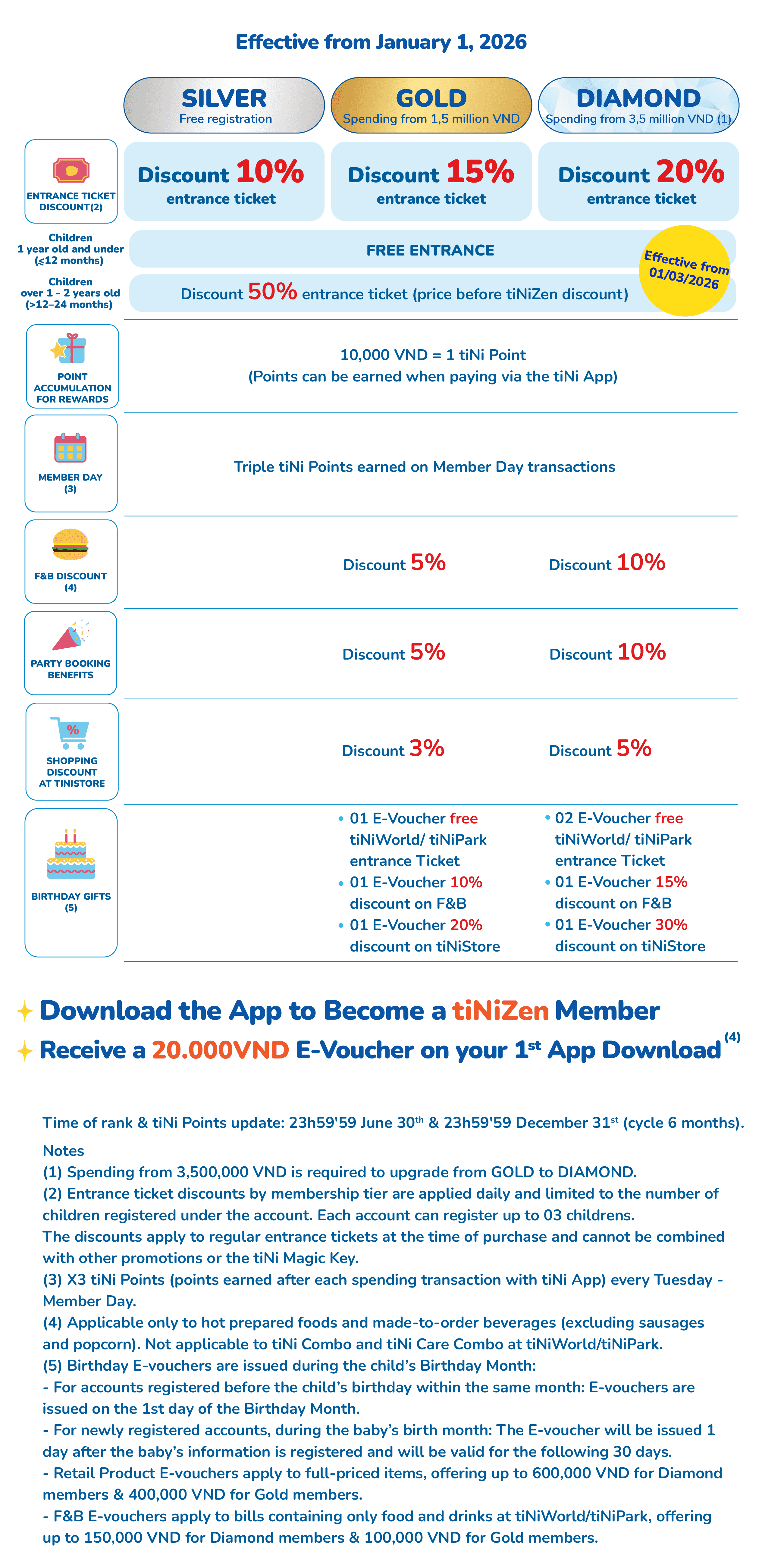 1. Customers who register for new membership from 01/03/2025 will follow the updated tiNiZen membership policy.